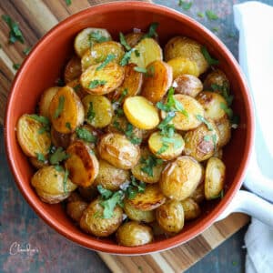 - Baby potatoes, halved, or regular-sized gold Yukon potatoes, chopped into 2-inch cubes.