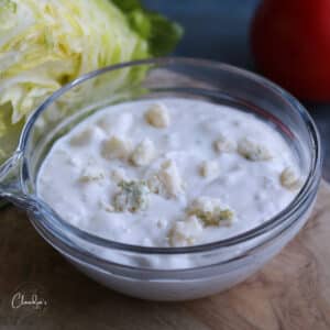 Indulge in the creamy and tangyย flavorย of classic homemade chunky blue cheese dressing with this easyย recipe. Perfect forย classic wedge salad,ย dipping sauceย forย veggies,ย buffalo wings, or toppingย burgers! This ah-mazingย creamy blue cheese dressingย will be your easy go-to every time! ย This is a steakhouse-style, chunky blue cheese dressing: creamy, thick, and featuring chunks of blue cheese.ย