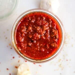 The beauty of this one is that you can make it in your slow cooker or an Instant Pot. I make this sauce both ways and it’s a life saver during the week. Many times, I fly to a location for the day, return to LA and land around 6pm and just want to go home. Eating out just doesn’t sound appealing. I want to be in my jammy pants, sipping a glass of wine waiting for a quick meal to share with my husband. Another plus? It makes about 9 cups of sauce, about 3 quarts. I freeze the remaining amount for a rainy day.