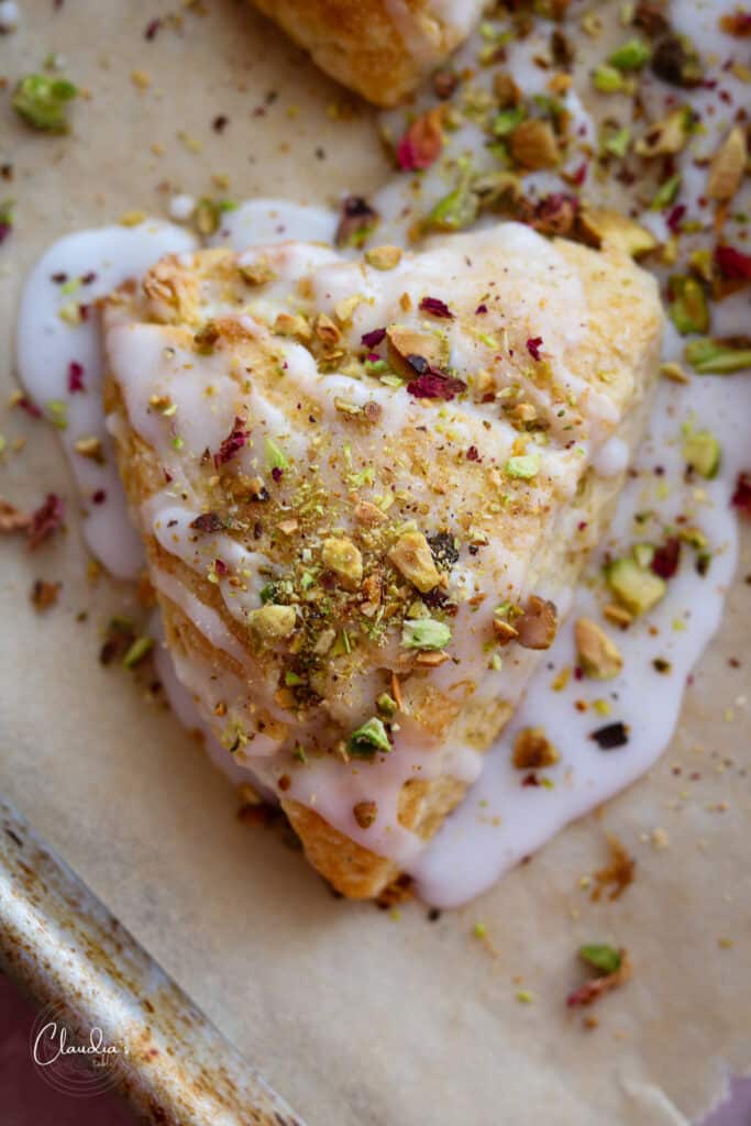 Scones with Rosewater Glaze and Pistachios